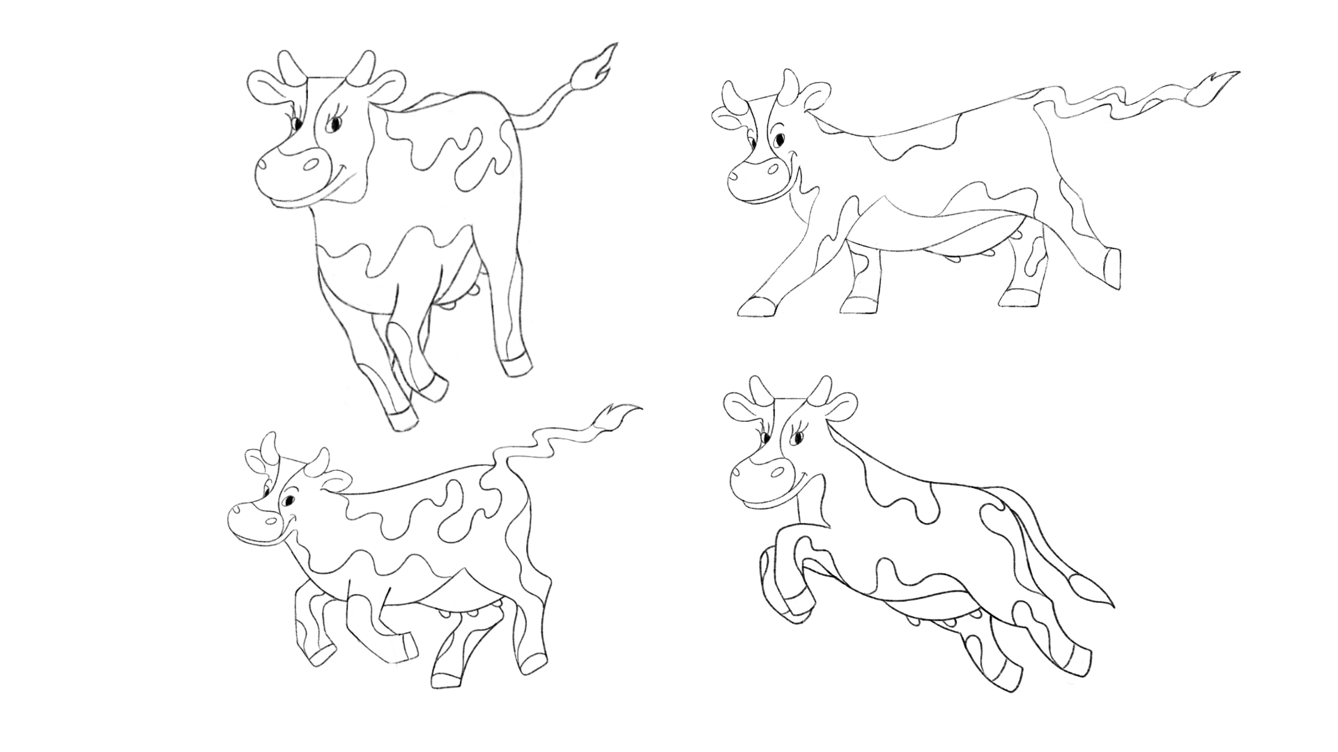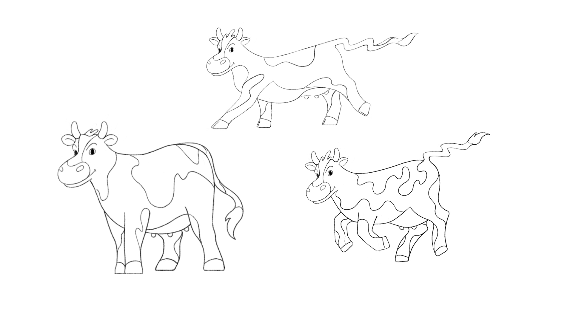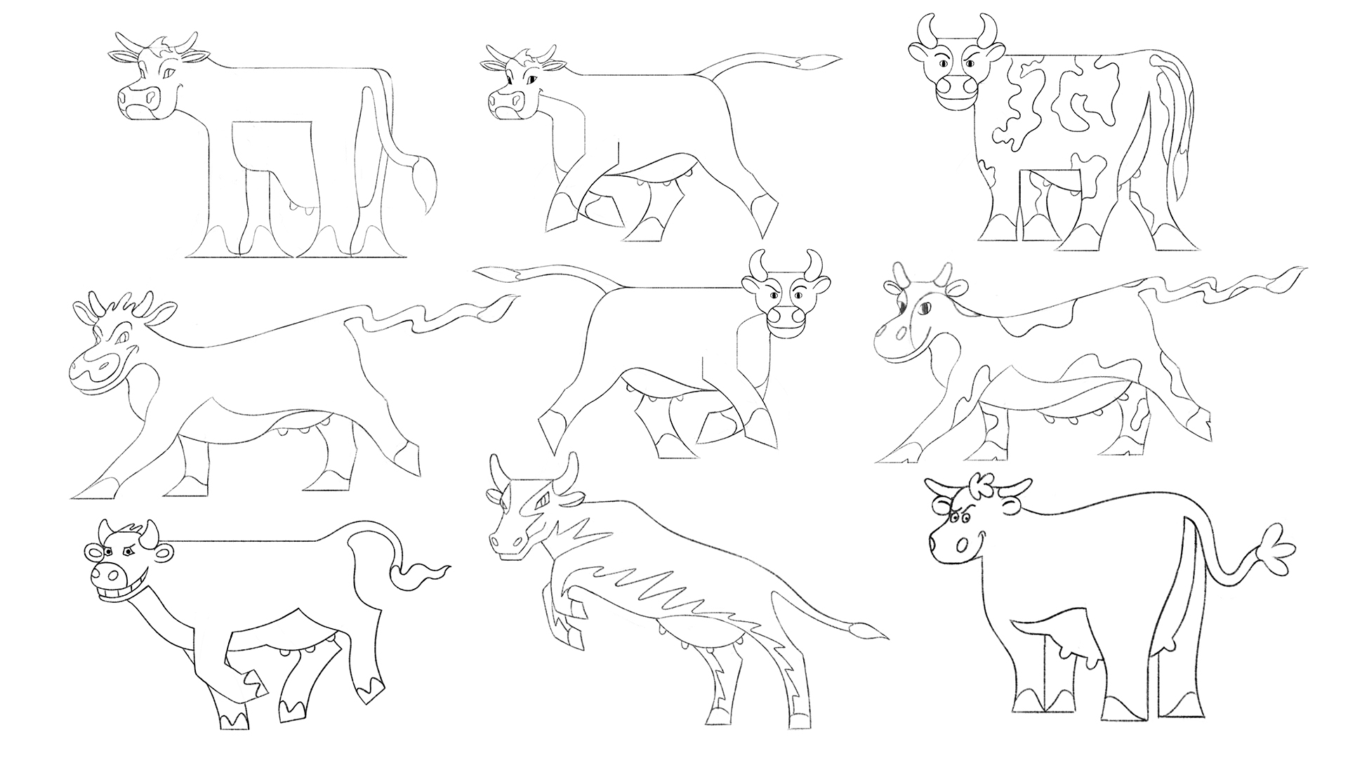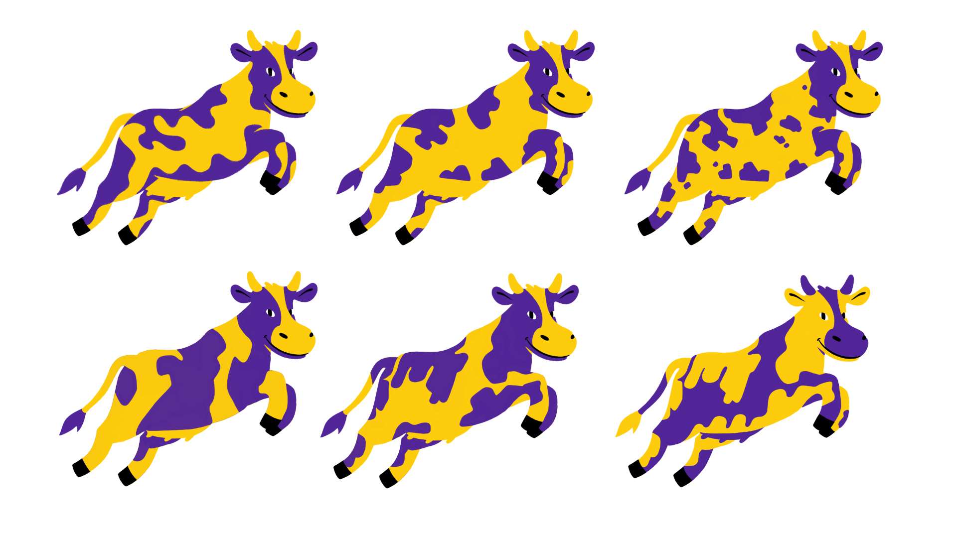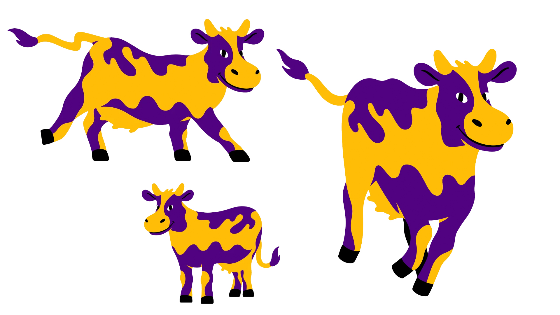 Here is the design we landed on. From here we played with the shapes of the patterns on the cow, and what poses to choose moving forward.