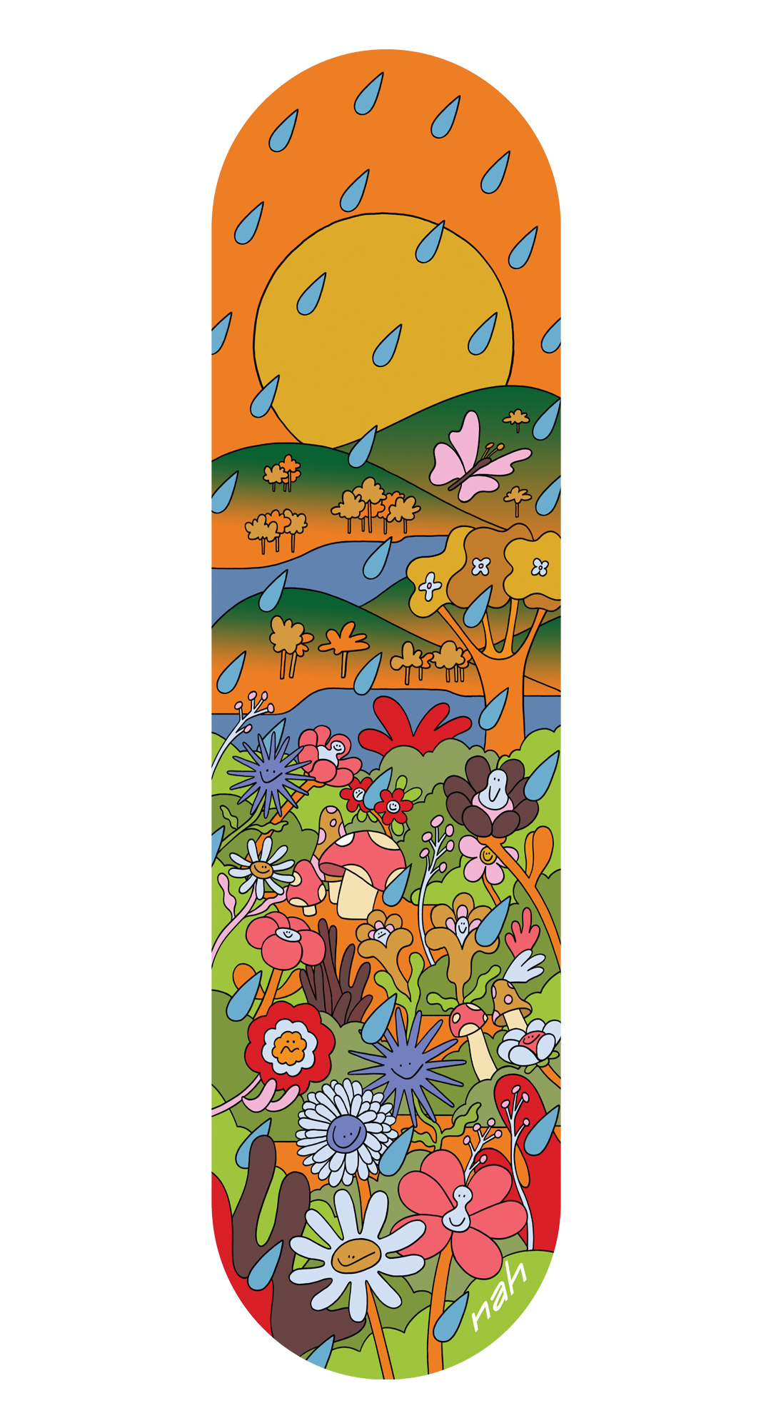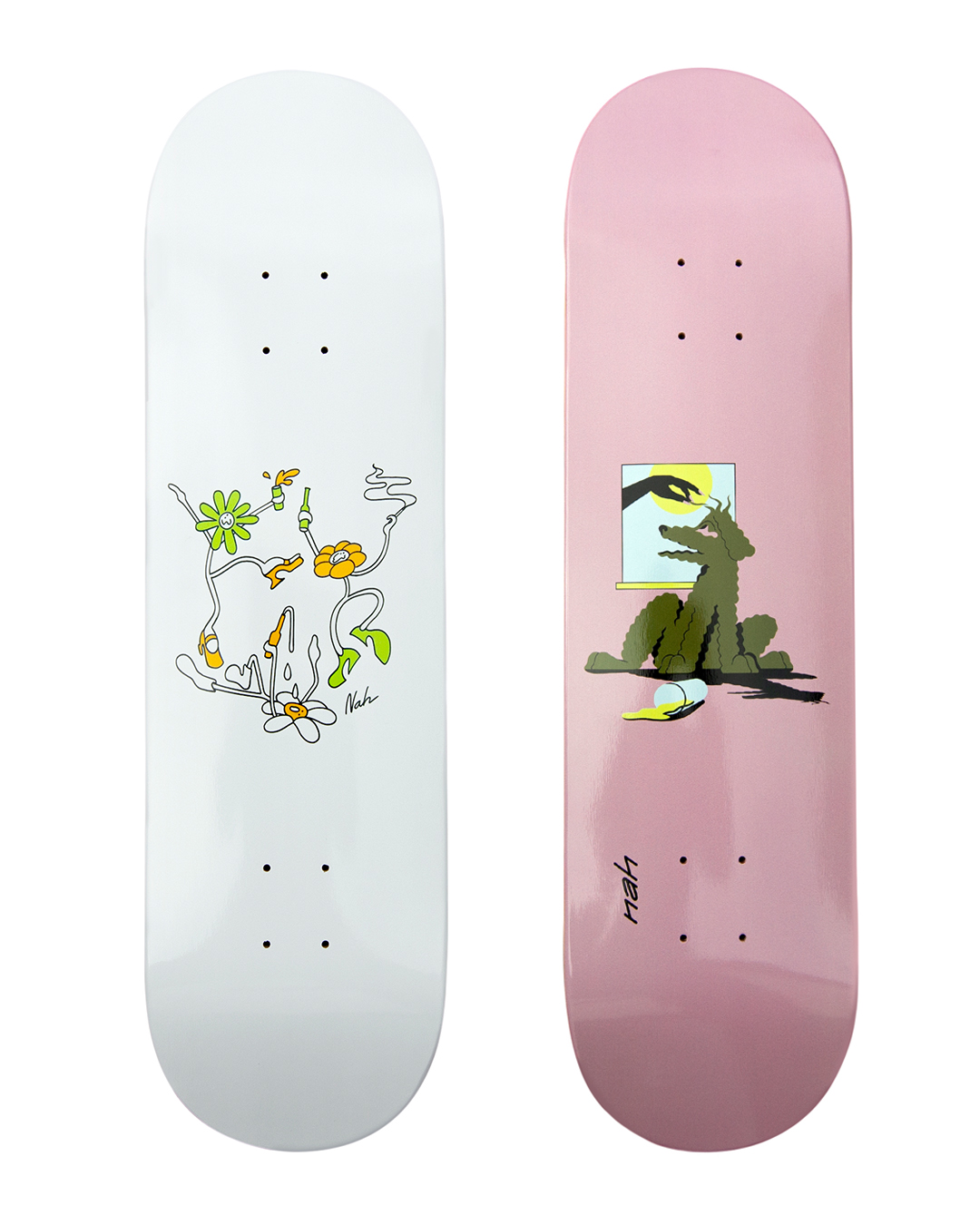 I'm the CD at Nah. Since 2019, I have been creating illustrations for aparel, accessories, skateboards, and homeware goods. I also take part in art-directing photography shoots, and creative-directing live-action commercials.